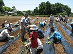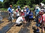 | 先生の話を真剣に聞きます | サツマイモの苗植え |