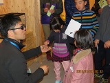 嫌われものの代表格であるヘビです。ジムグリの子どもですが,子どもたちは嫌がることもなく,怖がることもなく,興味津々で触れていました。こうした貴重な体験をすることで,本当はおとなしいヘビに苦手意識を持たないで欲しいと思います。 |