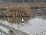 さっそくシジュウカラを発見したようです。双眼鏡の使い方もバッチリ!見つけた野鳥の名前や特徴などをその場で解説してもらうので、どんどん野鳥の魅力を知ることができ、もっと楽しくなっていきます。ふれあい橋を進むとなんと!コハクチョウが間近に!しかもじっとしていて、観察会のために大サービスしてくれました。