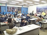 まずは講座室で、佐野先生から博物館で観察できる野鳥について特徴や見分け方などを教えてもらい、続いて双眼鏡の使い方を鳥の剥製で練習しました。
