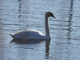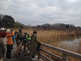 菅生沼ではコガモやオオバンといった観察しやすい水鳥に、つい見入ってしまいました。帰りに屋上に上がって菅生沼を見渡しました。1羽のきれいなコハクチョウが飛んできました。やっぱりツイてましたね!