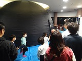 細谷先生は春に観察できる星座を、見ているだけで癒される写真などで解説してくれました。高橋先生は空気で膨らませたドーム型のプラネタリウムを使って、この日見るはずだった星空を観察しました。映像であれば大人も子どもも、同じ星空を共有できます。映像を拡大していって二重星だとわかる瞬間も、子どもたちは「ほら!今わかれた!」大人より先に気づいたり、プラネタリウムならではの面白さがありました。